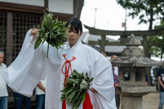 植付奉告祭は、五月下旬から六月にかけて行われます。神様に農作業の無事完了への感謝と共に作物の無事成長と豊作を願い、祭典と共に近江巫女による湯神楽を行います。