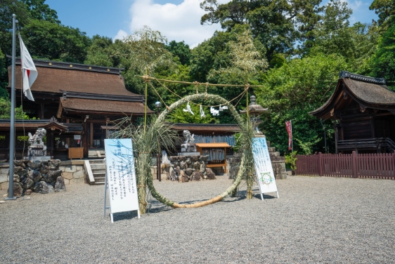 夏越大祓(茅の輪くぐり)は、毎年六月三十日に行われ、半年間で身に付いた目に見えない罪穢れを祓い無病息災を願う神事です。茅で作られた輪をくぐることで、身体や心の穢れを祓い清められるとされています。夏の厄を避けて健やかに過ごすための願いが込められています。